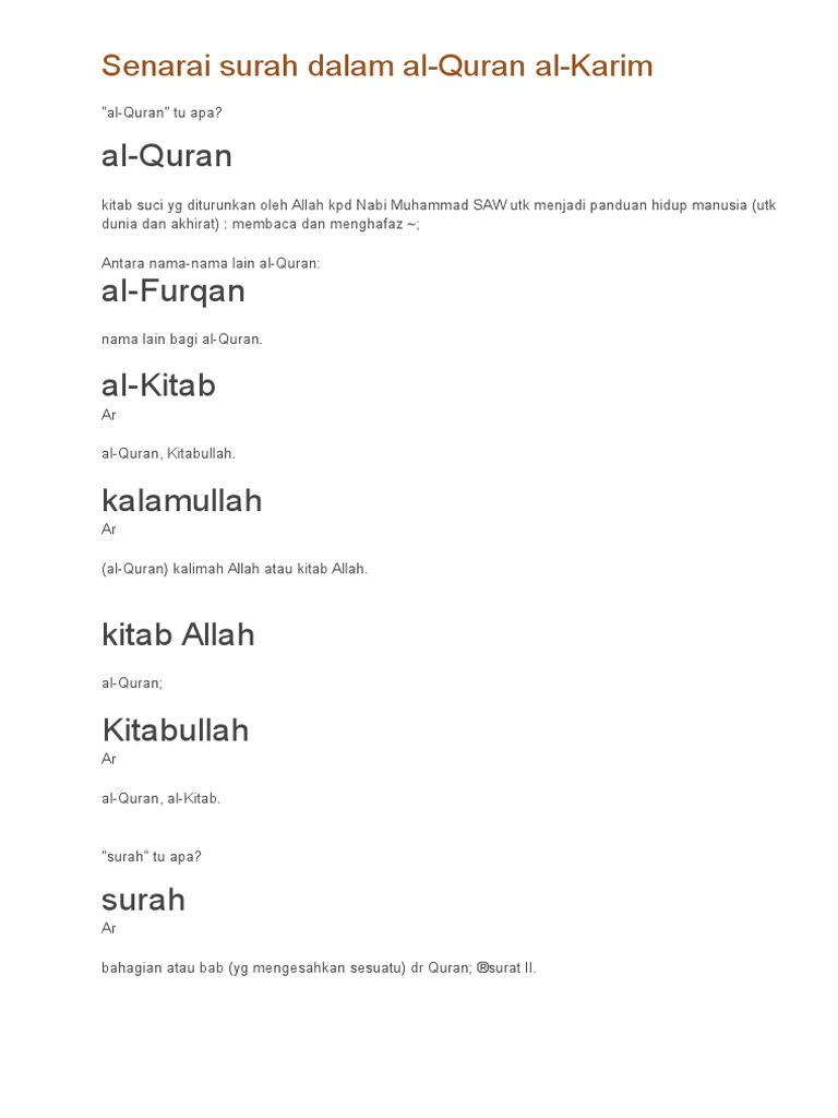 Senarai Surah Al Quran Dan Maksudnya