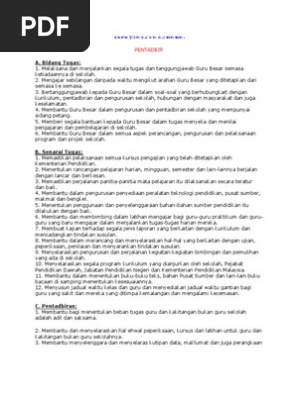 Senarai tugas guru besar a. Deskripsi tugas jd dapat membantu untuk menterjemahkan hasil daripada tugas tertentu dengan lebih jelas bertepatan dengan objektif penubuhan sesebuah agensi. 11 adalah saya md khirom bin ab.