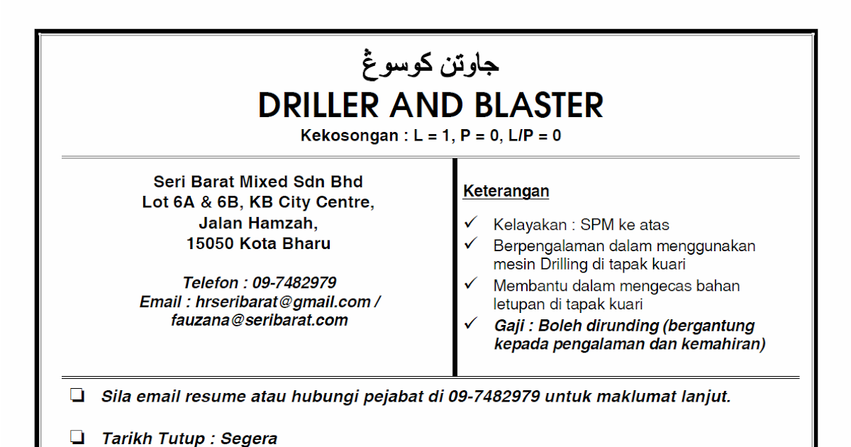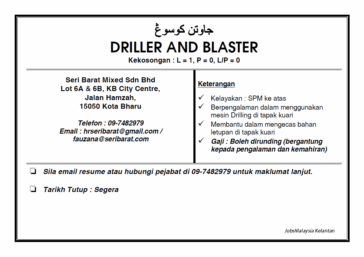 Info Jawatan Kosong Terkini Seri Barat Mixed Sdn Bhd Kelantan Jawatan Kosong Terkini