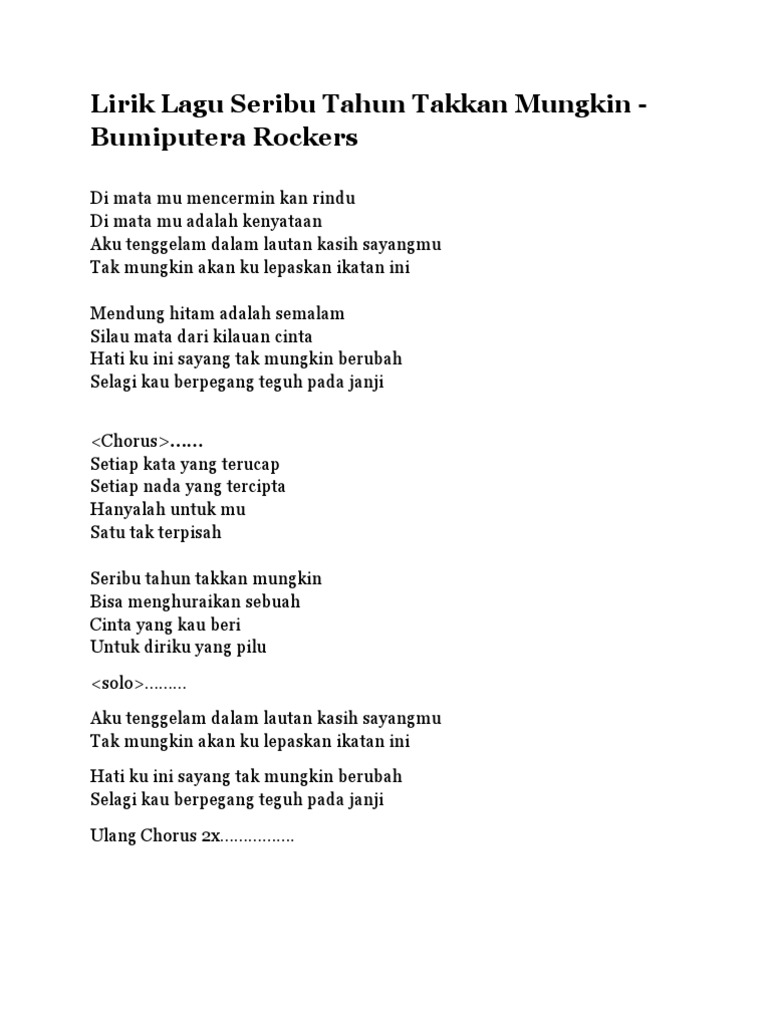 Bumiputra Rockers Seribu Tahun Takkan Mungkin Lirik Lagu Chords Chordify