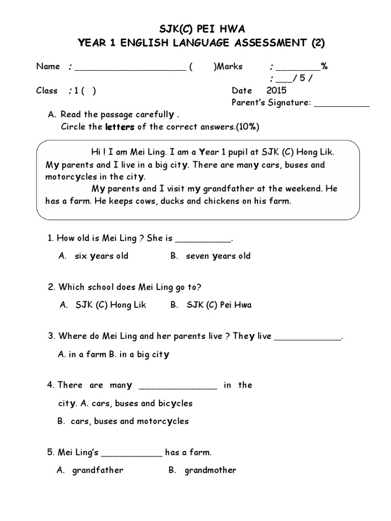 Fillable Online Sjk C Pei Hwa Jb Year 1 English Language Final Examination Fax Email Print Pdffiller