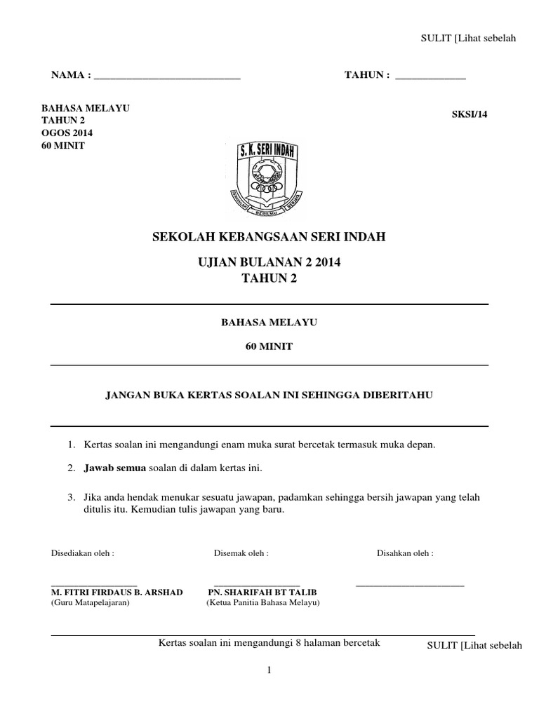 Soalan Peperiksaan Pertengahan Tahun Bahasa Melayu Darjah 2 Resepi Book F