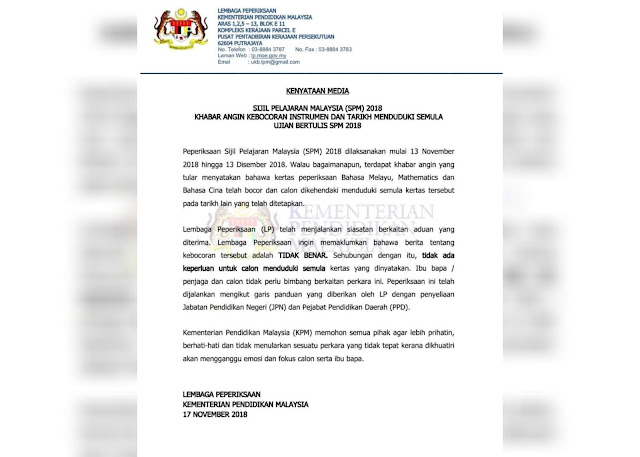Dakwaan Kertas Soalan Spm 2018 Bocor Adalah Tidak Benar Kaki Share