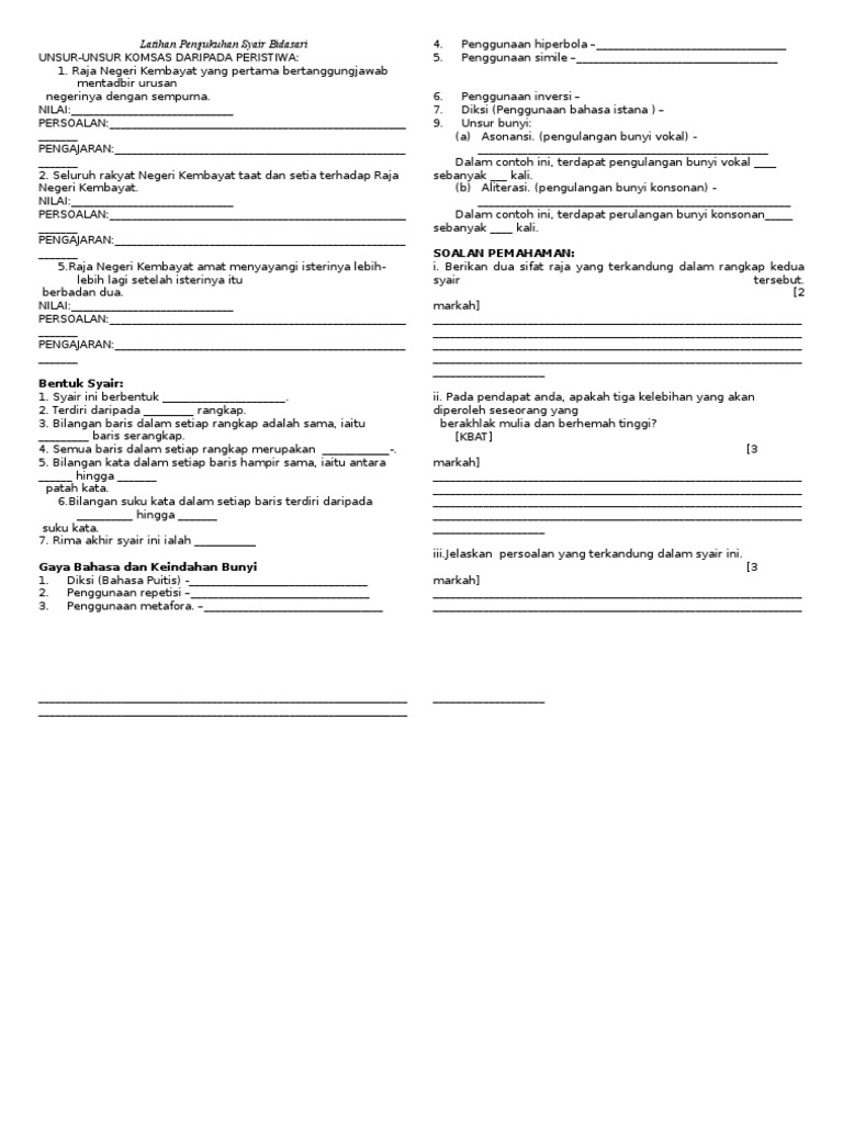 Laman Bahasa Melayu Spm Nota Syair Bidasari Dan Soalan Latihan Pemahaman Soalan 2 C Yang Akan Dibincang Dalam Pdpc Esok Inysa Allah