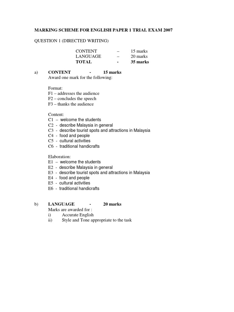 English Spm Trial Paper 1 Marking Scheme Vocabulary Punctuation