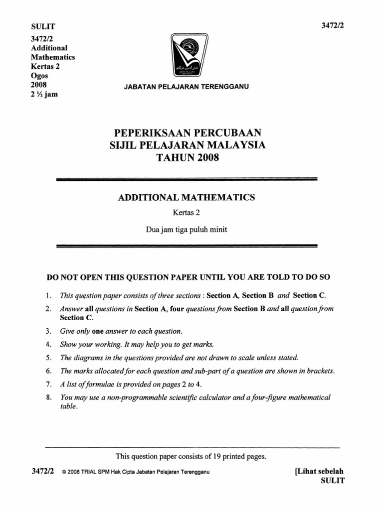 Terengganu Trial Spm 2008 Add Maths P2