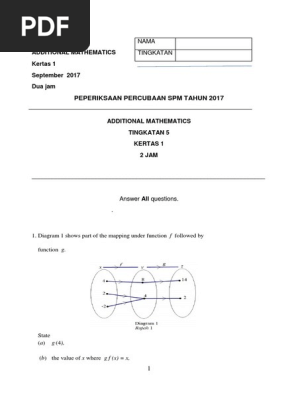 Peperiksaan Percubaan Spm Add Maths Paper 1 2017 Function Mathematics Logarithm