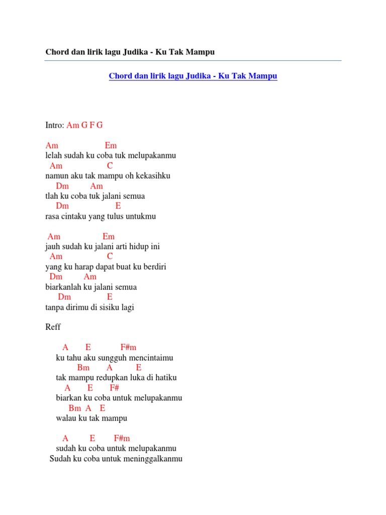 Lirik Dan Chord Gitar Sudah Ku Tahu