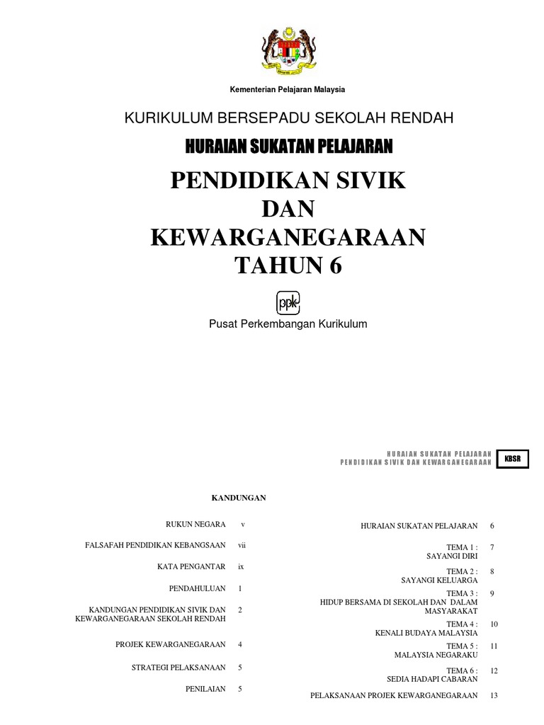 Pendidikan Sivik Dan Kewarganegaraan Tingkatan 4 Huraian Sukatan Pelajaran