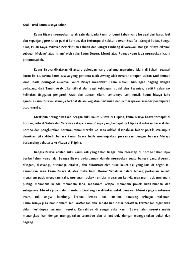 Intro Apresiasi Seni Sejarah Kaum Bisaya Sabah