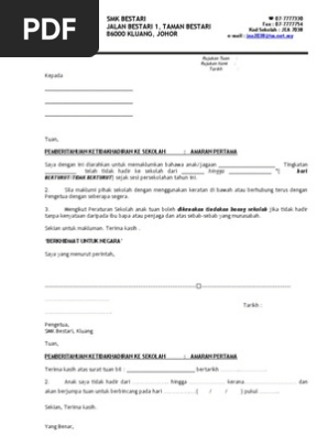 Surat Amaran Tidak Hadir Ke Sekolah Doc