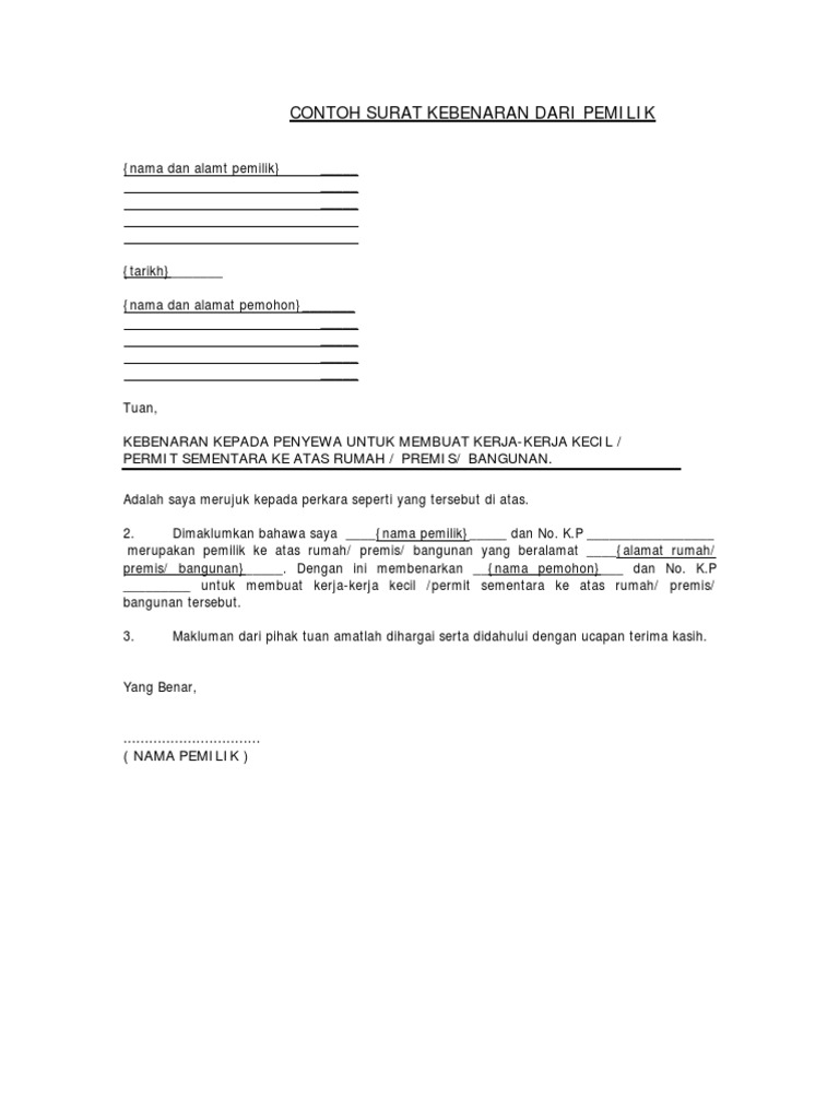 Contoh Surat Kebenaran Dari Pemilik Pdf