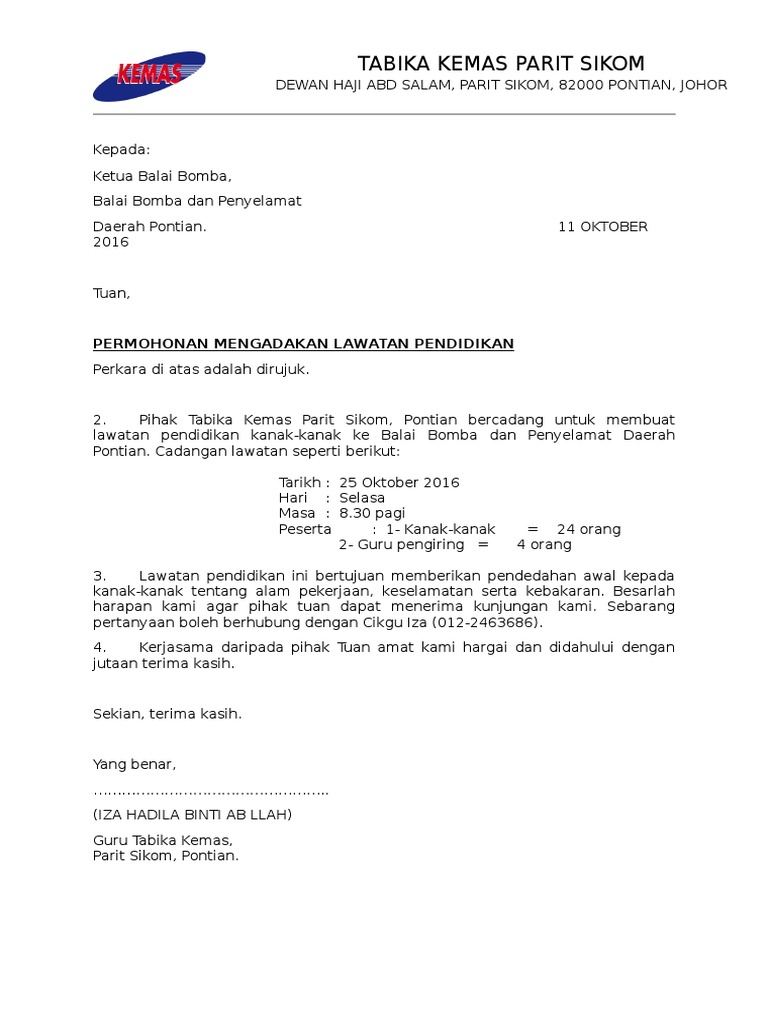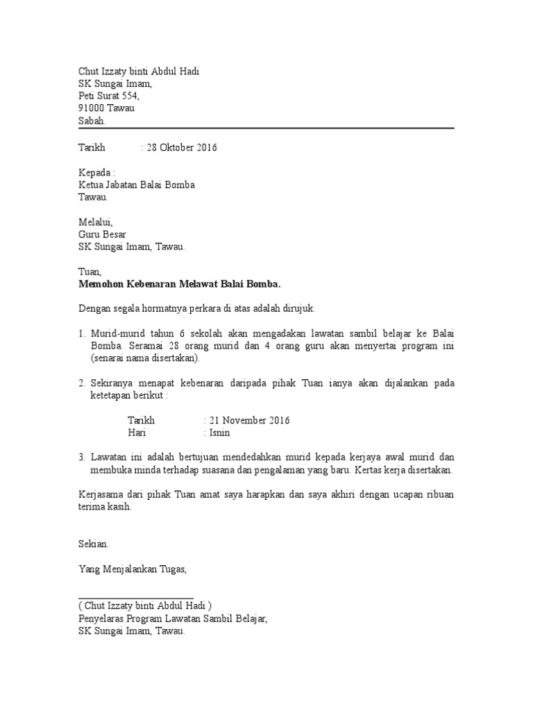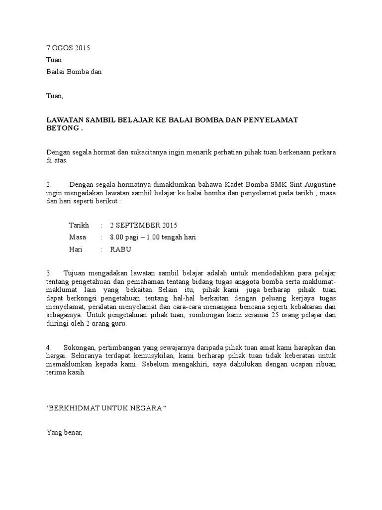 Contoh Surat Rasmi Lawatan Ke Balai Bomba Surat Rasmi K