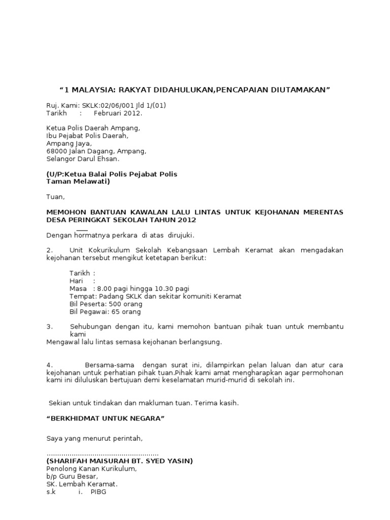 Surat Mohon Bantuan Polis Trafik 2012