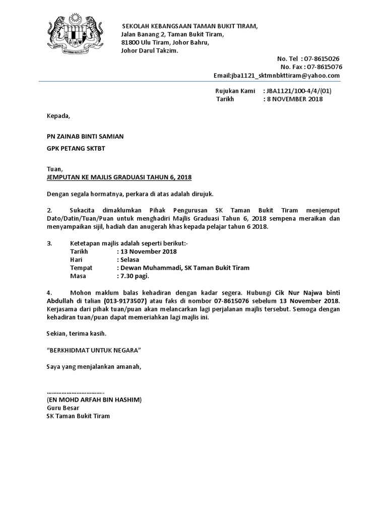 Surat Rasmi Saya Yang Menjalankan Amanah