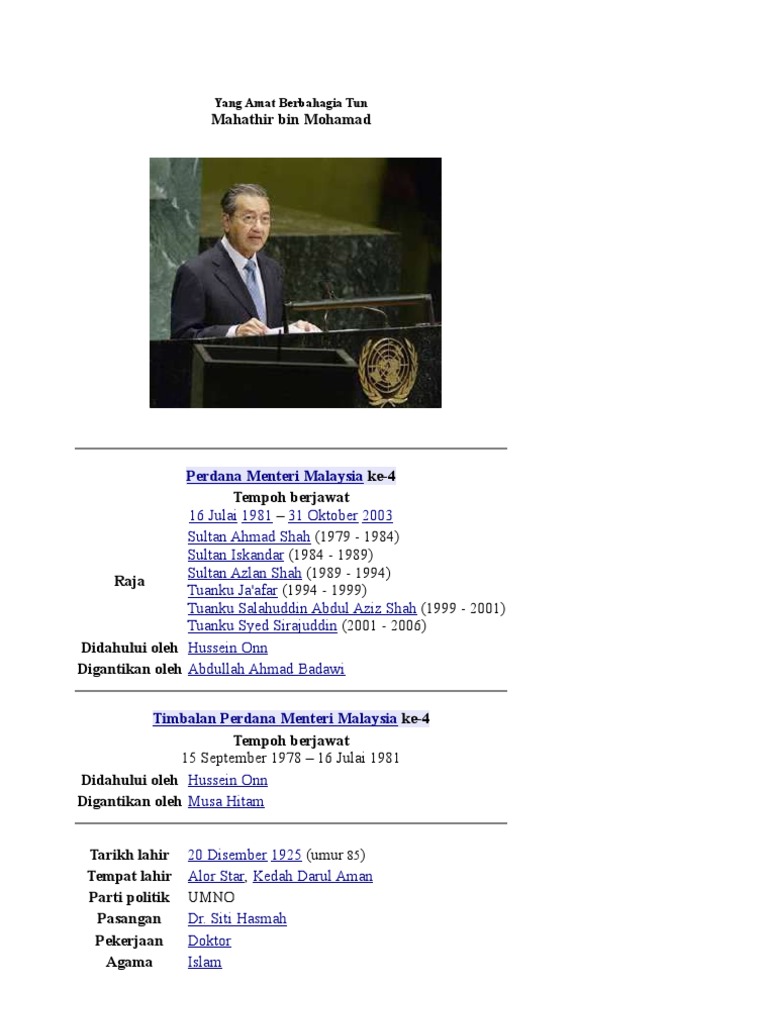 Mahathir Bin Mohamad Perdana Menteri Malaysia