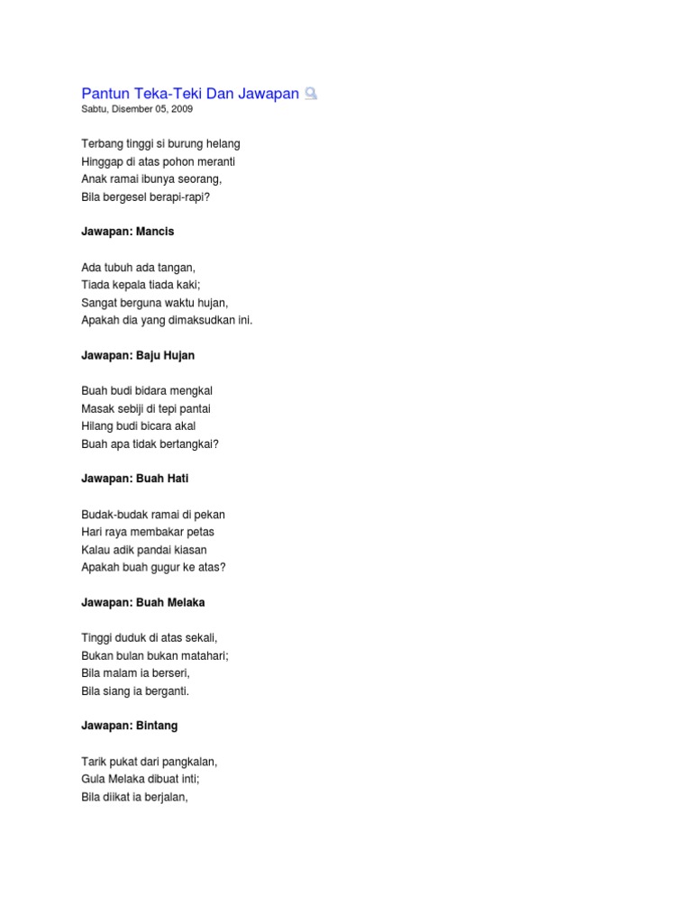 Lawak Pantun Teka Teki Dan Jawapan