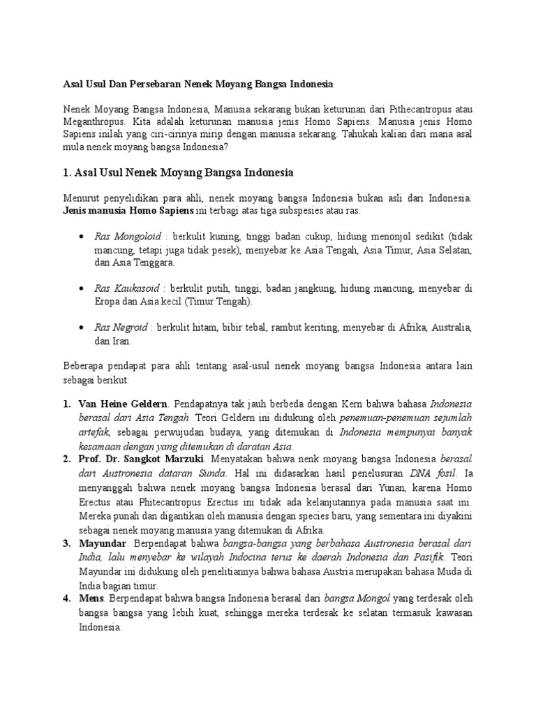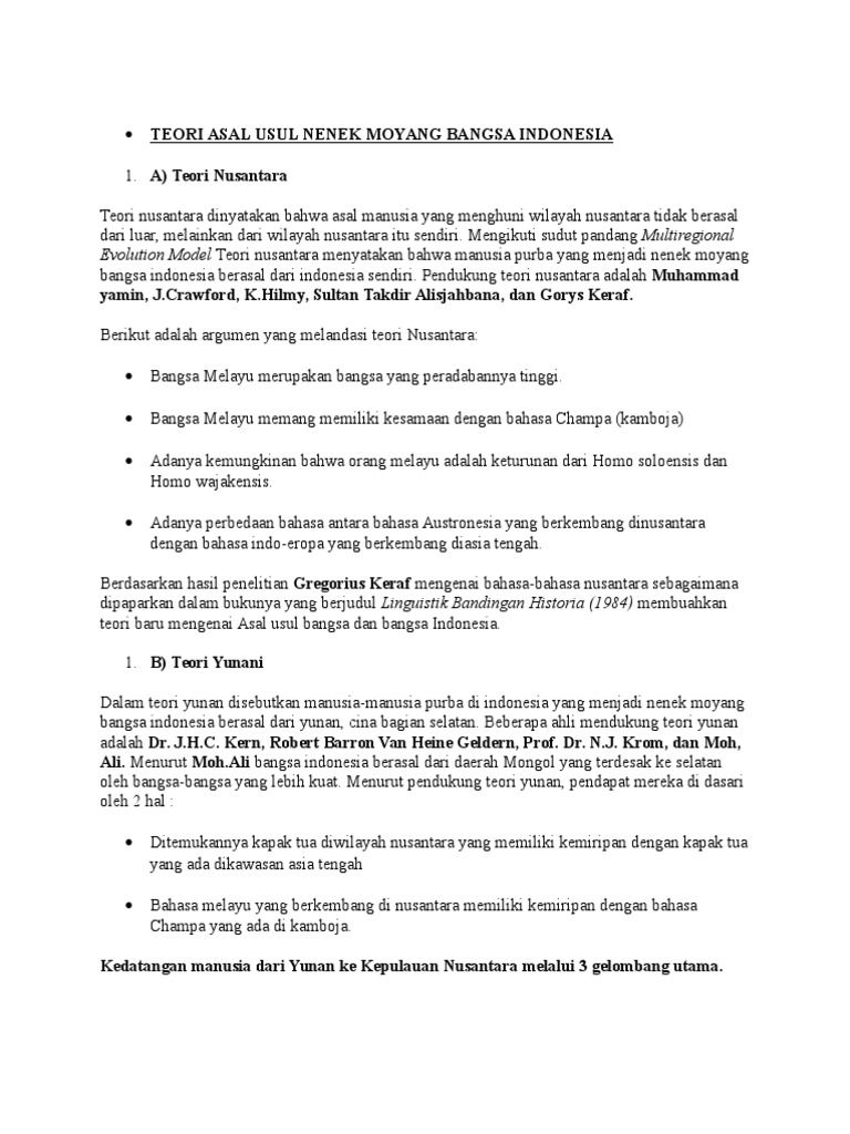 Doc Teori Asal Usul Nenek Moyang Bangsa Indonesia Alya Raisa Nadya Barabai Academia Edu