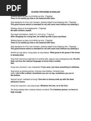 Filipino Proverbs Tagalod English