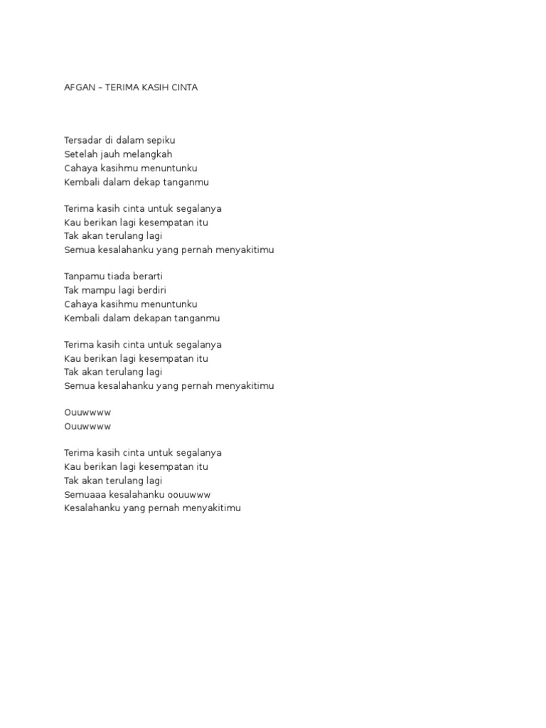 Afgan Terima Kasih Cinta Lyrics Genius Lyrics